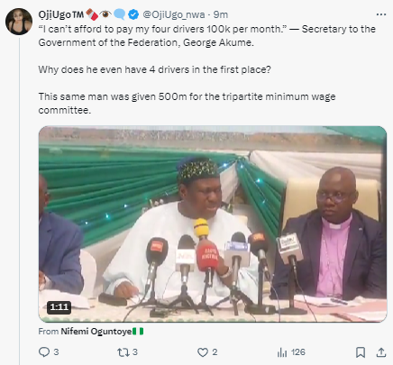 Minimum wage: “I can’t afford to pay my 4 drivers 100k per month” SGF George Akume laments (Video)